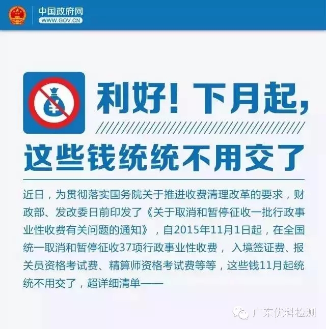 根據國家認監委最新發布的消息《財政部國家發展改革委關于取消和暫停征收一批行政事業性收費有關問題的通知》(財稅﹝2015﹞102號)有關事項,通知如下: