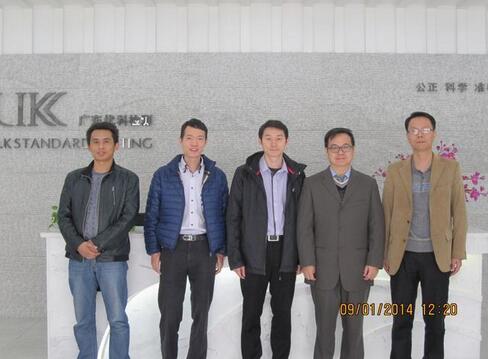 2014年1月9日,UL臺灣資深工程經理Jason Chang 、香港UL工程經理Jaseph Lie和廣州UL市場部經理 Eric He 分別從兩岸三地齊聚優科蒞臨現場, 參觀指導實驗室工作, 以下為我司領導和UL專家合影。